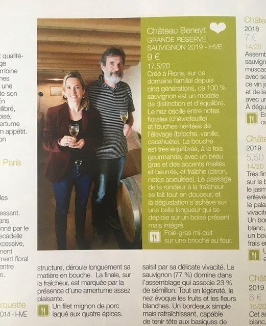 Notre vin Grande Réserve Sauvignon blanc 2019 a été distingué dans la magazine Terre de vins. Il a obtenu la note de 17.5/20 et il fait partie des coups de coeur de la rédaction. Retrouvez l’intégralité de l’article ici